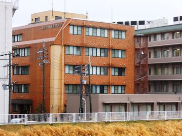 楠橋から右に目を向けると愛生会看護専門学校が見えます。