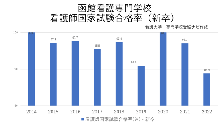 函館看護専門学校の看護師国家試験合格率は82.1%でした(受験者28名、合格者23名、2023年実施・新卒)。