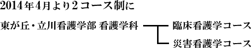東が丘・立川看護学部には 「臨床看護学」と「災害看護学」の2つのコースを設置しています。