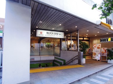 田園都市線「駒沢大学」駅の東口に出ます。地下から階段を上った所を、左に曲がります。