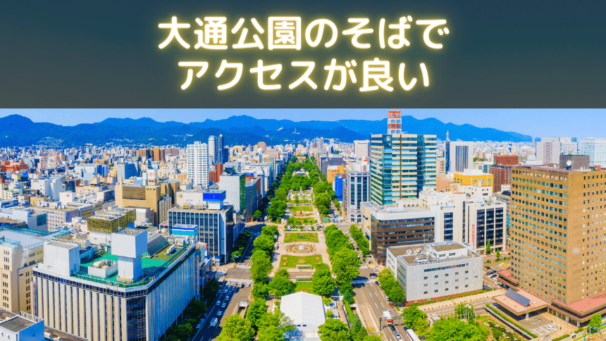 ・学校は大通公園が近く、通学や都心へのアクセスが良好です。地下鉄西11丁目駅2番出口から徒歩3分。学校から実習場所に行くのにも便利です。