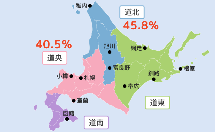 就職先のエリアの約85%を道北と道央エリアで占められています。