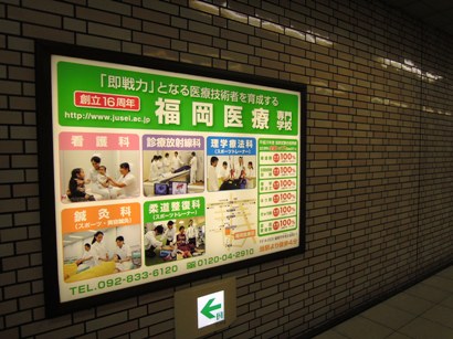 「西新駅」の地下道で見ることができる福岡医療専門学校の掲示です。