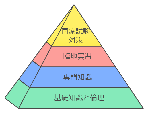 また、国家試験対策も充実しており、1年次から段階的に対策を強化していきます。個々の学生の習熟度に応じたきめ細かな指導を行い、模擬試験や補習、さらには予備校との連携など、多角的なアプローチで学生の合格を支援しています。