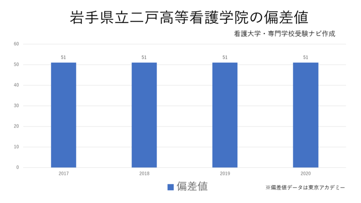 二戸高等看護学院の偏差値は51となっています。この偏差値は50%の合格可能性を示しています。