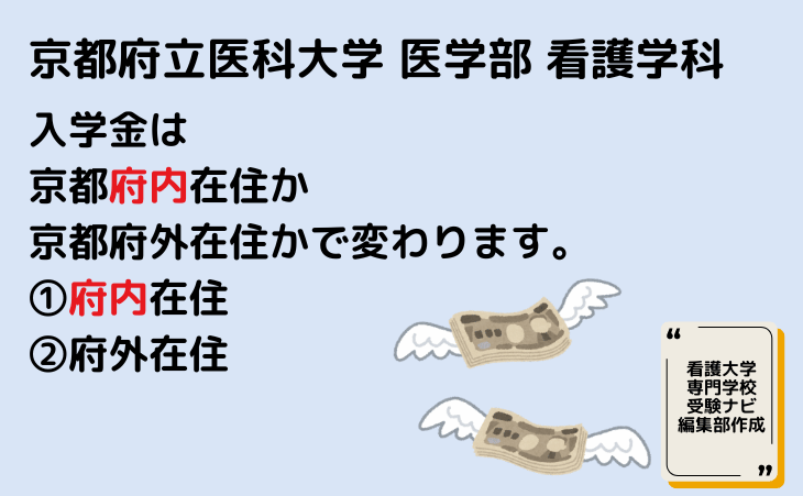 京都府立医科大学医学部看護学科の学費(初年度納入金)は705,000円(京都府内在住)、または817,800円(京都府外在住)です。