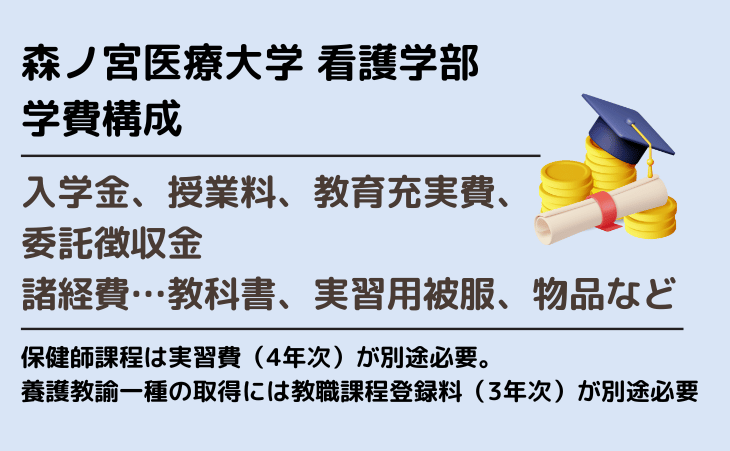 ※保健師課程を選択する場合、4年次に別途6万円(実習費)、養護教諭一種のコースを選択する場合は3年次に別途5万円(教職課程登録料)が必要です。