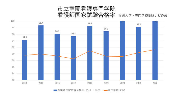 市立室蘭看護専門学院の看護師国家試験合格は96.2%でした(受験者53名、合格者51名、2023年実施・新卒)。