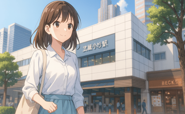 武蔵小杉キャンパスは、再開発が進む近代的な街にありながら、緑や広い歩道も整った快適な環境。