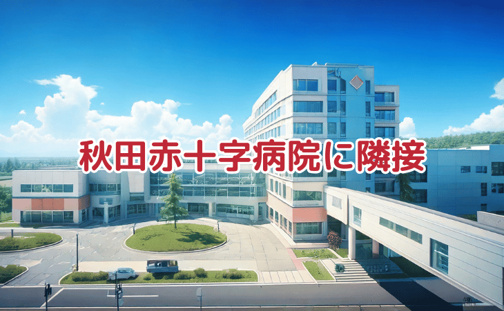 ・「秋田」駅東口からバスで15分、「日赤病院前」下車すぐ