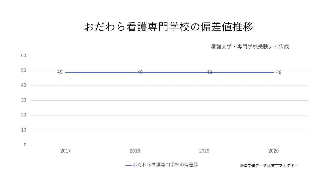 おだわら看護専門学校の偏差値は49となっています。この偏差値は50%の合格可能性を示しています。