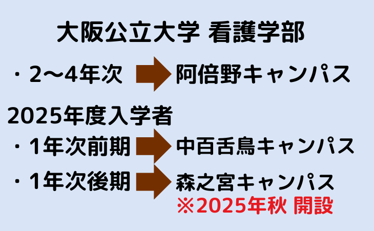 ・最適な環境を提供する都市型キャンパス。使用するキャンパスは2年次~4年次は阿倍野キャンパス。2025年度の入学生は1年次は前期が中百舌鳥キャンパス、後期が森之宮キャンパス。2026年度以降の入学生は1年次前期から森ノ宮キャンパス(週1回程度は阿倍野キャンパス)になる。