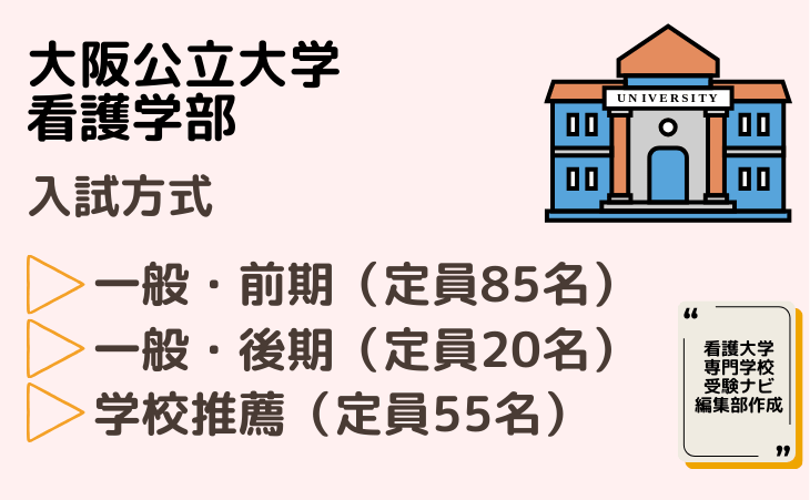 ※大阪公立大学看護学部の定員は160名(内訳…一般【前期】85名、一般【後期】20名、学校推薦55名)