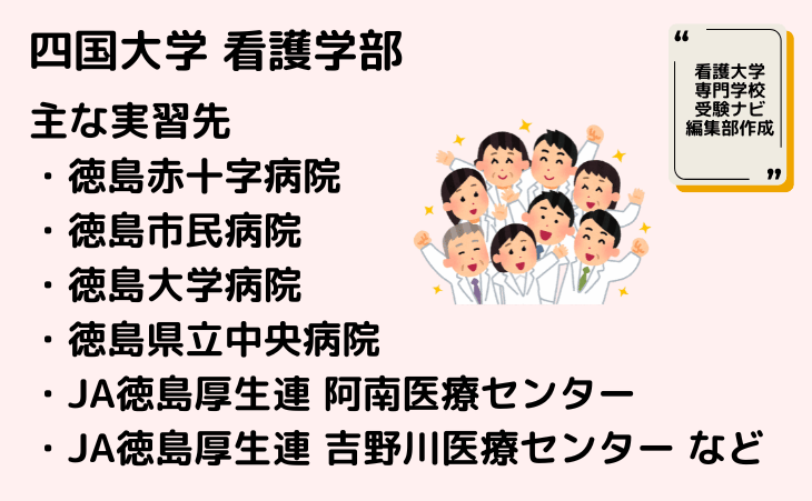 臨地実習提携機関の充実: 徳島赤十字病院や徳島大学病院など、多くの医療機関と提携し、実践的な学びを提供しています。
