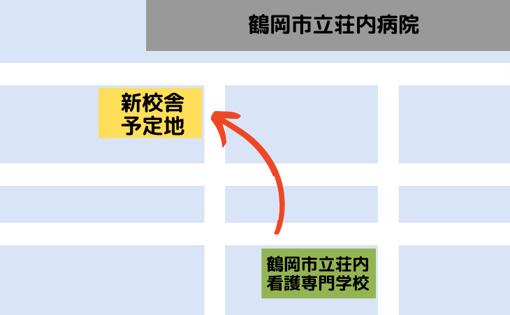 そして、2025年には3階建ての新校舎が実習病院でもある鶴岡市立荘内病院のすぐそばに開校予定です。現在の校舎からも荘内病院は徒歩3分と十二分に近いのですが、新校舎はさらに荘内病院に近くなり、一層便利になります。