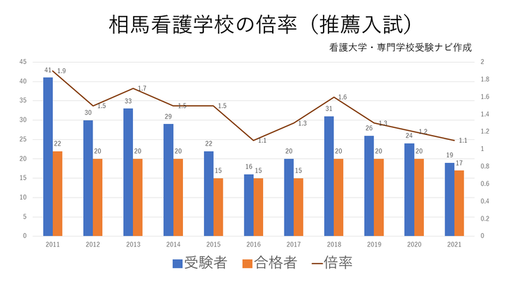 相馬看護専門学校の倍率は1.3倍でした(2021年度一般入試)。