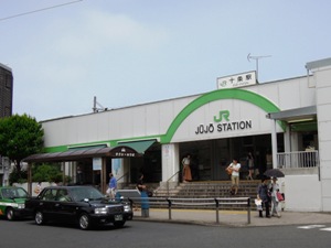 最寄り駅の十条駅(北口改札)です。ロータリーを出て大通り(都道455線)へ進みます。