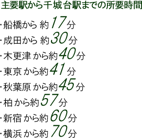 ・JR都賀駅(総武本線)より千葉都市モノレール「千城台駅」下車。「御成台車庫」行バス乗車「情報大学正門(東門)」下車。