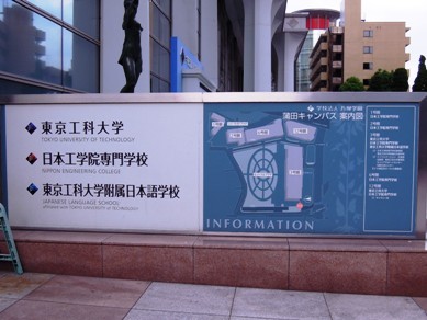 「蒲田キャンパスの案内図」の看板です。蒲田キャンパスには東京工科大学の系列校である日本工学院専門学校などもあります。